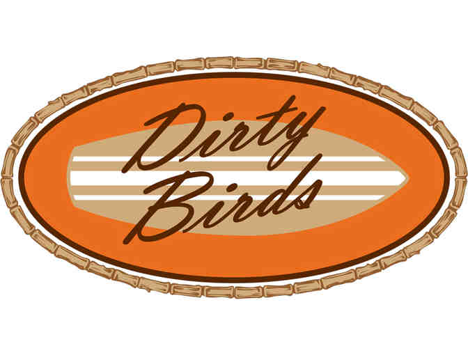 Enjoy a $25 Gift Card to Dirty Birds in Liberty Station PLUS a Dirty Birds mesh-back cap, Dirty Birds grey t-shirt (Men's size large), and a sleeve of 3 Titleist ProV1 golf balls.