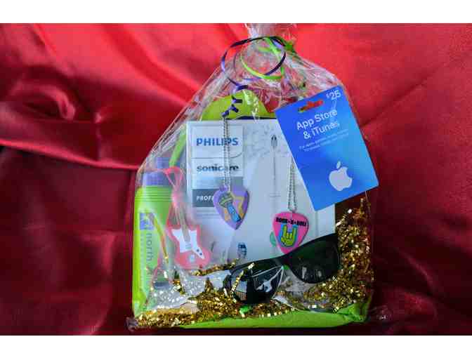 Philips Sonicare EasyClean Sonic Toothbrush, $25 iTunes gift card, water bottle, bubbles, necklaces, and sunglasses.