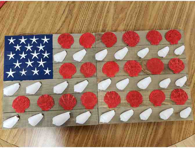 The student's of room 30 brought creative flair to this patriotic project San Diego style. This rustic piece is made from hand painted authentic sea shells and starfish, arranged to look like our nation's flag. It would be great for Memorial, Labor and 4th of July holiday decor or an everyday homage to our beloved country. Comes in 2 pieces. Will come with spray sealant to use to weather proof if you choose.