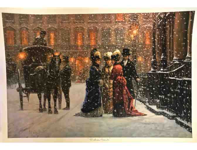 This exquisite 36" X 24" of Between Friends captures a quiet, snowy moment from a time we've almost forgotten. Review the value of his prints and original oil paintings here.