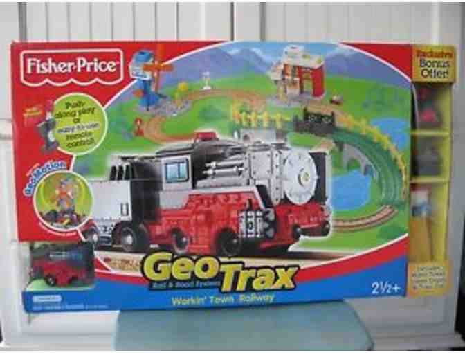 - A Fisher-Price "Geo Trax" Workin' Town Railway Rail & Road System