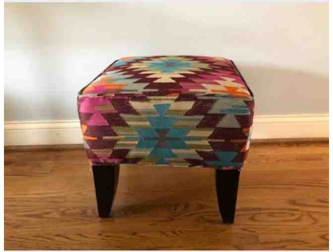 Beautify any room in the house with this gorgeous custom ottoman upholstered in a stunning silk fabric from JAB Anstoetz.