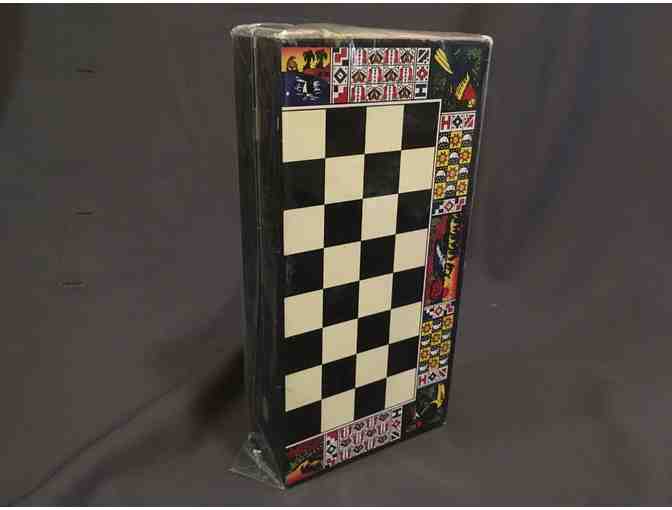 Challenge your student to a game of chess in style! This handmade chess board includes the board that folds to double as a carrier, and handmade ceramic men as the chess pieces. This is a one of kind set for a one of kind game!