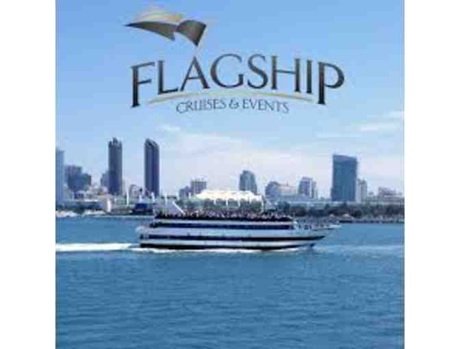 See San Diego from the water! Tourist or resident, you'll both enjoy seeing San Diego from the comfort of a Flagship cruise! This certificate allows 2 passengers to embark on any one or two hour narrated Harbor Tour! Bon Voyage!