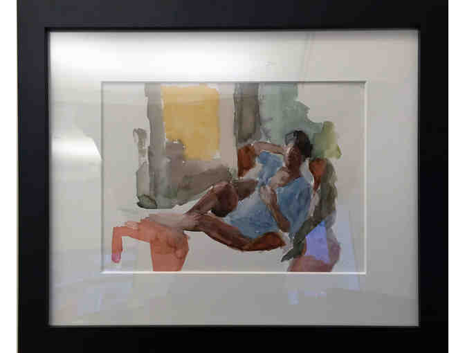"Reclining Ruby," framed watercolor painting by Corvova Lee