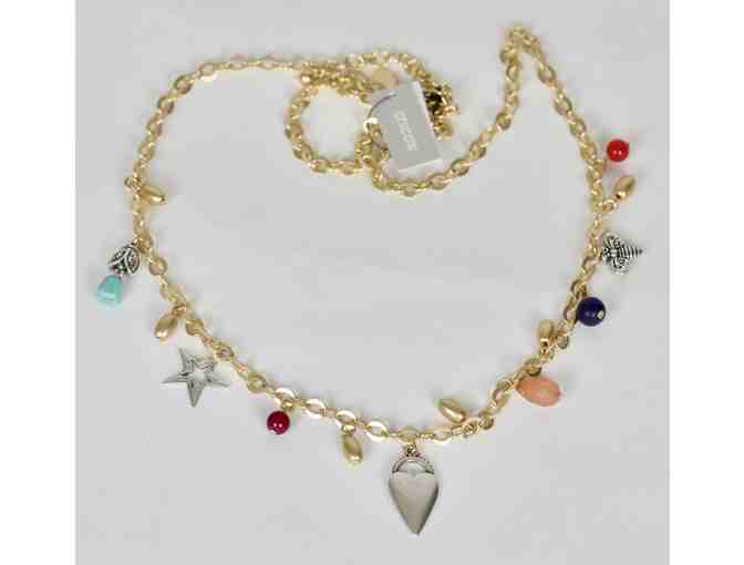 Gold tones shine so right on this necklace. The single-strand design is finished with lovely charms.