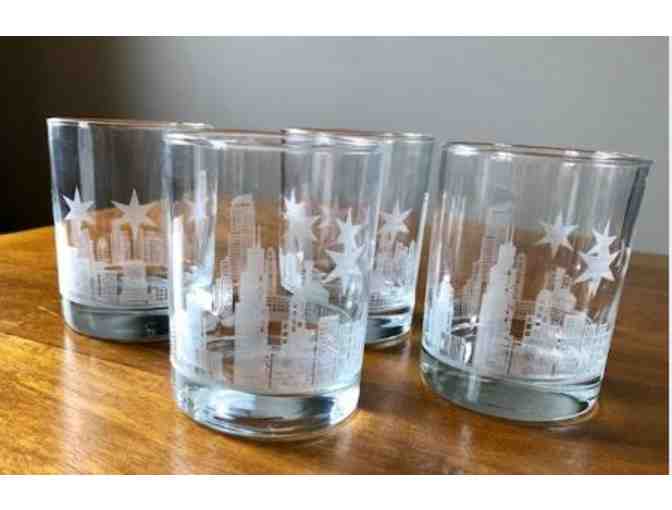 Set of four (4) rocks glasses custom designed and laser-etched in Lane's very own LT Maker Lab (@LTMakers). The designs features the Chicago Skyline.