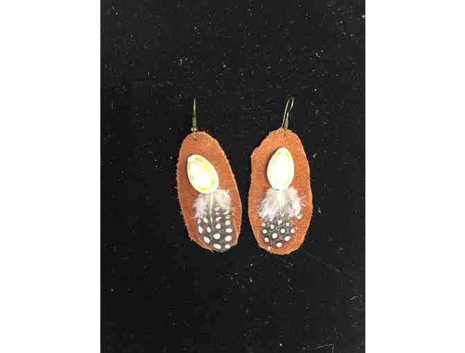 You are bidding on a pair of feather earrings inspired by Native American studies and made by the WSP 4th grade.