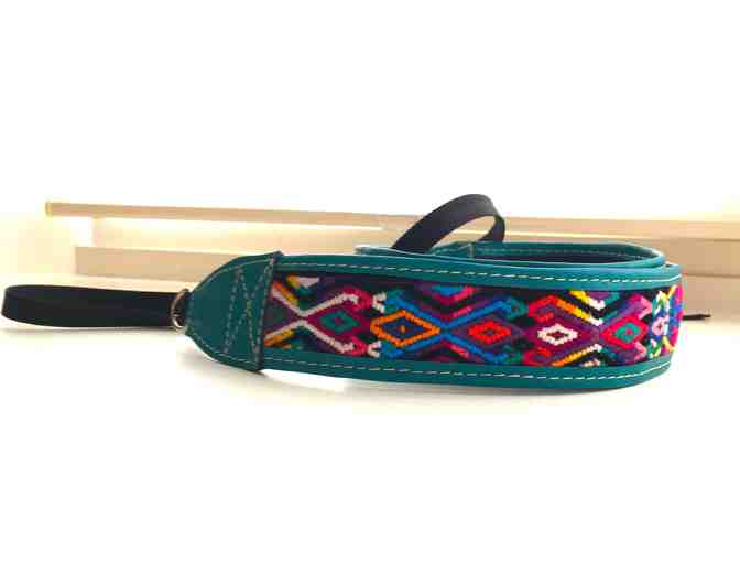 Beautiful Guatemalan camera strap - turquoise leather trim