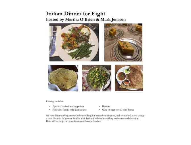 Indian Dinner for Eight Hosted by Martha O'Brien and Mark Jenssen