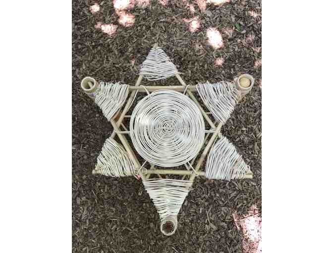 You are bidding on a small garden table made out of bamboo and willow by the 5th grade class.