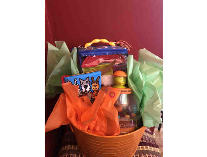 Cute Toddler Basket with Toy Blocks and Other Goodies