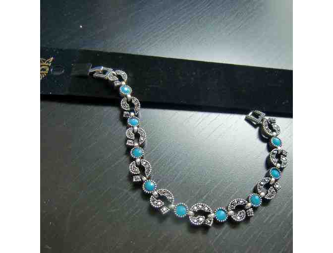 DK Bracelet was imported from the Anatolia region of Turkey. Enjoy a fresh spring color with a classic byzantine silverplate sparkle. 6.75".
