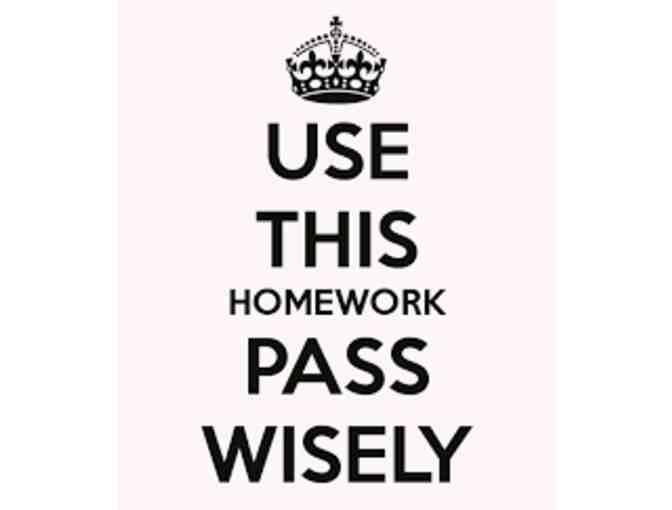 Sometimes, you just don't feel like getting the work done. Or, maybe you're super busy and it's bedtime when you realize you haven't done homework. Have no fear...the winner of this auction gets 4 Homework Passes to use during the remainder of this school year!!!! Woohoo!