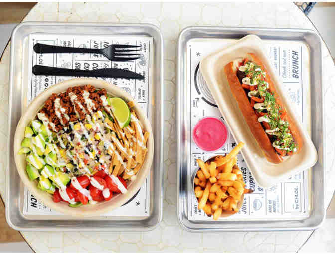 Hip vegan restaurant with locations in NYC, Boston, LA, London + Rhode Island.