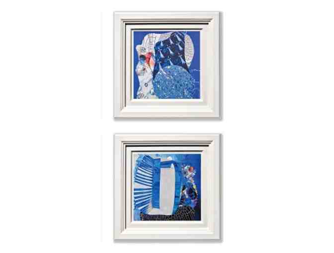 Both works are 8” by 8”… archivally framed in white each piece measures 13” by 13” finished…or 13” by 28” as a vertical diptych…including a 2” intermittent space.