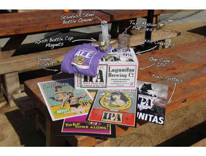 Sip & Spill Package: 1 case of our signature IPA, 1 bottle opener, 2 drinking vessels to for superior drinking as well as 1 stone coaster to set it on, 1 t-shirt to spill it on, 4 posters & a handful of magnets.