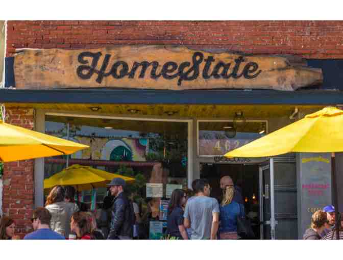 Ever wonder what the big line of people is on Hollywood Blvd - it's for Homestate's breakfast! Enjoy a great meal at HomeState with this certificate for $50. PLUS - get a HomeState sweatshirt.