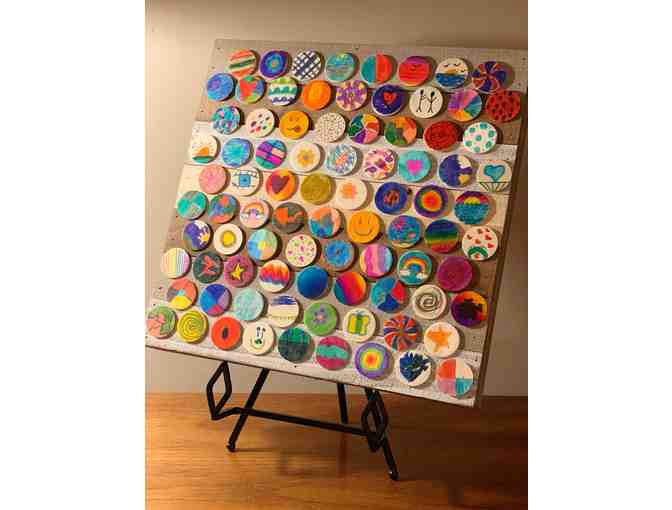 Color abounds! All artists contributed a small, individually designed wooden circle to create the finished piece entitled, "Circling 6th Grade!" It is a beautiful reminder of your child's time in 6th grade!