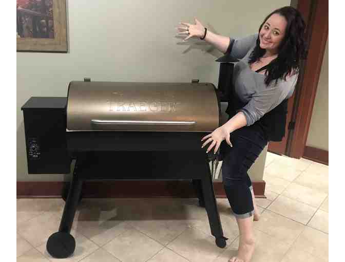 Has Classic sawhorse chassis for linebacker-like stability. The brawny side-lift bar gives even weight distribution and the solid all-terrain wheels ease while rolling your grill over pavers, rocks, and dirt. The digital Pro Controller rocks Advanced Grilling Logic, which maintains a +/- 15 degree F temperature control* to guarantee precision grilling. Create the original Traeger taste while taking your grilling skills Pro.
