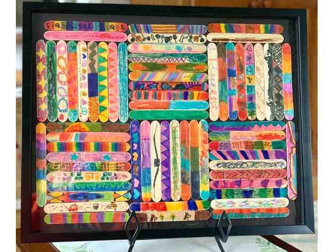 Each artist in the 2nd Grade completed a popsicle stick that was added to the overall "woven" design! This piece is filled with color and the joy of summer!