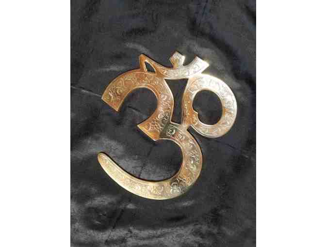 A beautiful brass, engraved Om symbol. Approximately 10". Made in India.