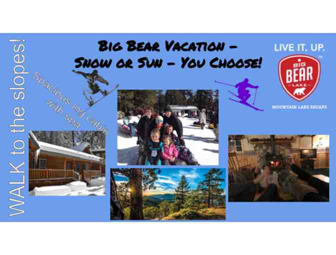 This Big Bear Lake & mountain retreat is close to everything...but secluded on a quiet road just two blocks from the base of Snow Summit Resort. The spacious log cabin features 3 bedrooms and 2 baths with a large vaulted ceiling living room with plenty of space for everyone! The home is fully stocked with everything you will need from linens to cooking spices as well as a wood burning fireplace for those cold nights. Choose either 3 summer nights or 2 winter nights during snow season.