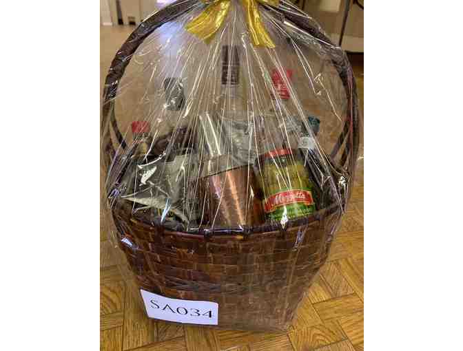 Perfect for entertaining at home, this basket comes loaded with all you need for Manhattans and Martinis: shaker, glasses, olives, Jim Beam, Ketel One, and Beefeater.