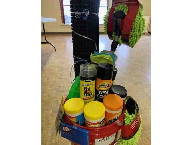 With warmer weather right around the corner, get your ride summer- ready with this awesome car care package. Featuring a 5 gallon bucket, $40 Delta Sonic gift certificate, Turtle Wax Wash, Fix- A- Flat, Armor All wipes and sprays, chenille mitt and mop, microfiber towels, air fresheners and a heavy duty garage floor mat.