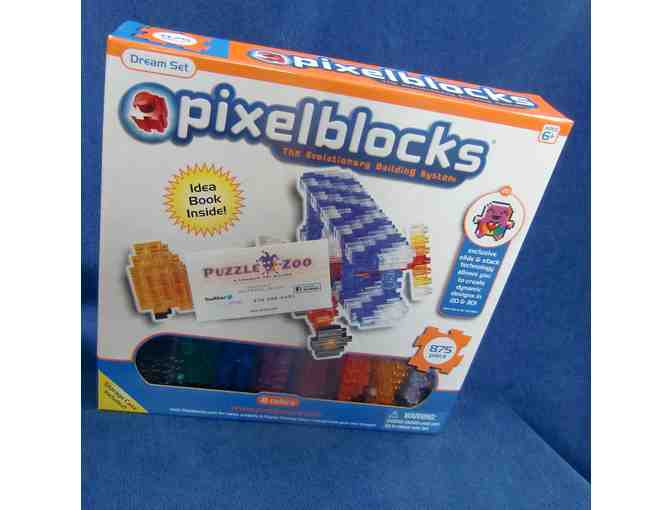Dear Puzzle Zoo on Main Street, Thanks for the 875 piece pixelblocks Dream Set, with storage case included! With eight translucent colors and the Idea Book, I can use the evolutionary building system to create dynamic designs in 2D and 3D. Yours truly, an age 6+ Creator.