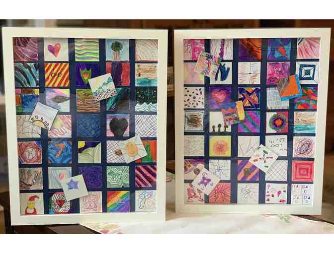 The fourth grade worked together to complete a beautiful collaborative 2-piece work of decorated squares. Hang each piece separately or together for maximum impact!