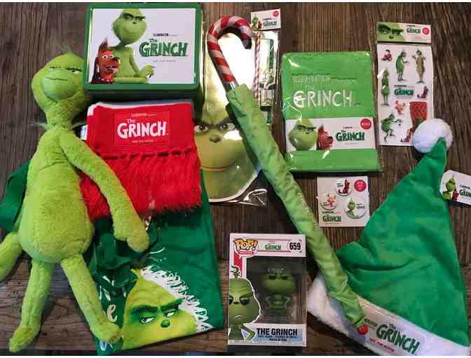 The Grinch pack includes a bunch of fun swag including: a plush Ginch backpack, scarf, t-shirt, mini lunchbox, furry journal, “Santa” hat, and more!