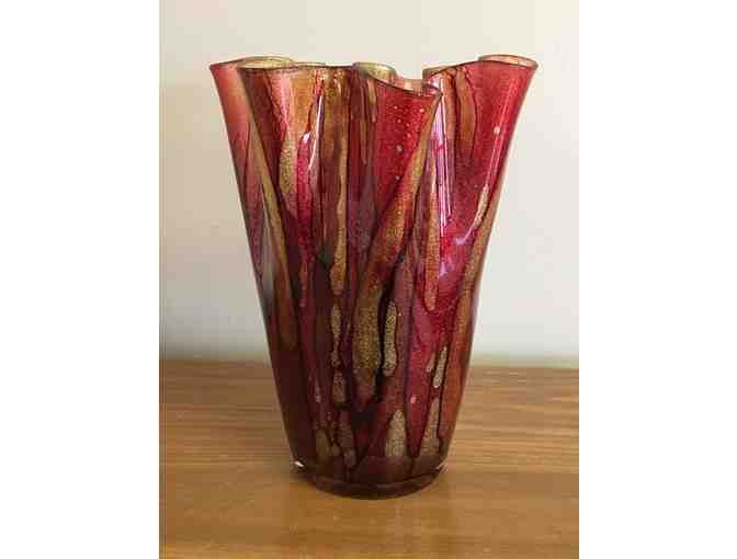 What a beautiful piece for any home or office. An imported European Artisan hand- blown variegated luster vase.