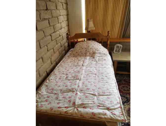 Wrap yourself in this flannel quilt made from the Divine Mother's nightgown which She wore for several years. Made lovingly for the auction here at the Ashram. Approximately 38x67"