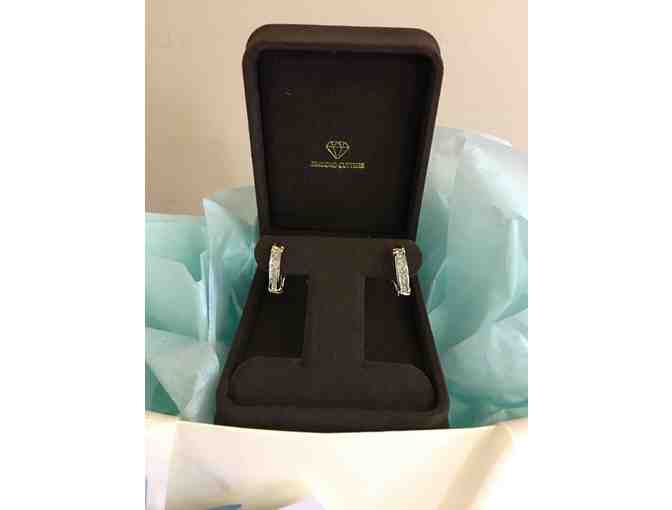 Check our these stunning 14kt yellow and white gold ladies cast fashion earrings with clutch backs and channel set with a bright polish finish.