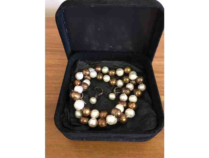 This beautiful two- toned strand of pearls with matching earrings will look perfect on the one you love.