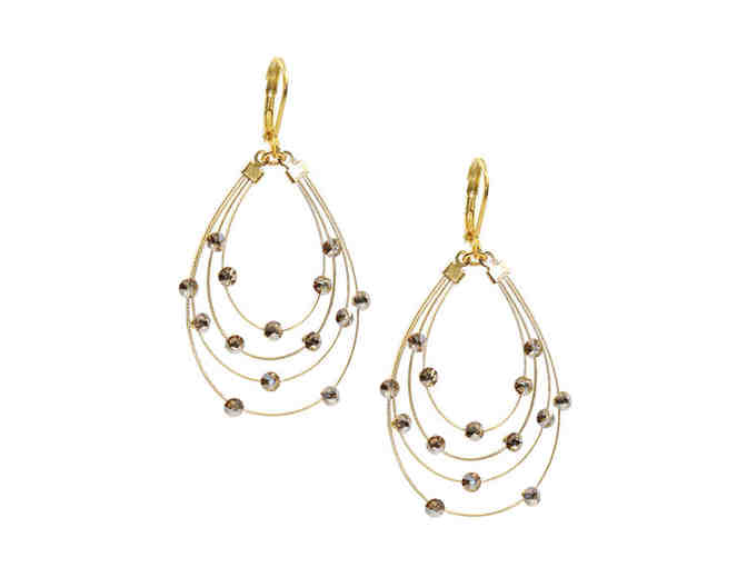 24kt gold plated wire lever-back earrings embellished with gold Swarovski crystals. By Seasonal Whispers, handmade in Tribeca.