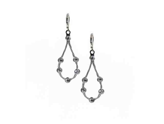 Sterling silver wire lever-back earrings embellished with clear Swarovski crystals. By Seasonal Whispers, handmade in Tribeca.
