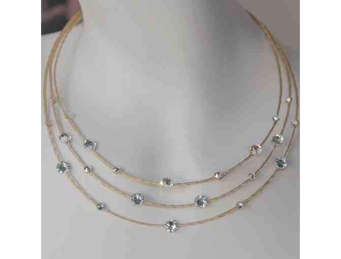 24kt gold plated wire necklace with clear Swarovski crystals. By Seasonal Whispers, handmade in Tribeca.