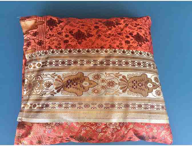 Silk Orange and Gold Brocade Pillow made from the Divine Mother's Sari