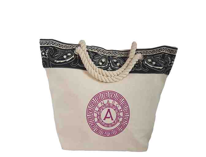 Get beach ready with this beautiful beach tote. It includes oil and a scented candle. Athenaromas is the altered state of luxury in fragrance.