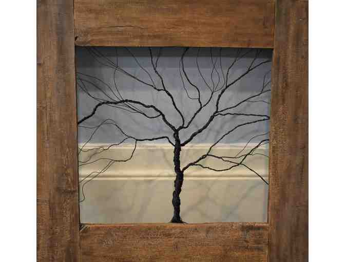 Description: Wooden frame surrounding wire sculpture, no backing