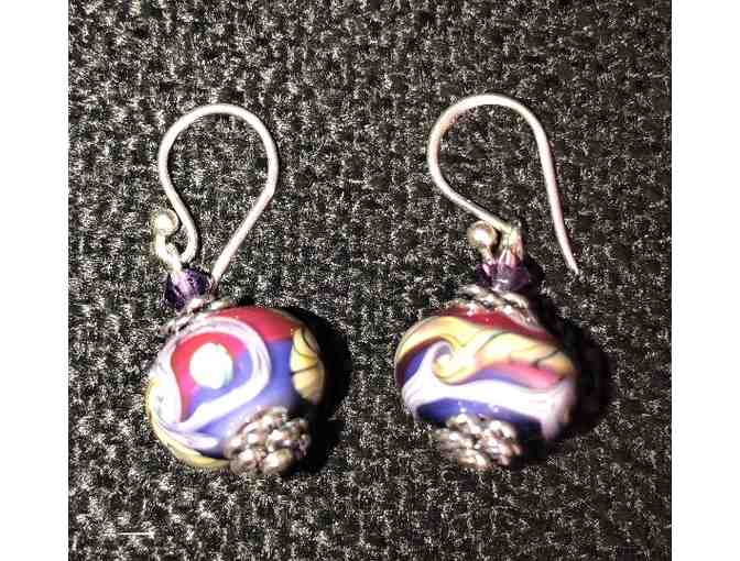Beautiful Asian Blown Glass Rasberry and Purple earrings created by Nancy Choate of Nancy's Creations.