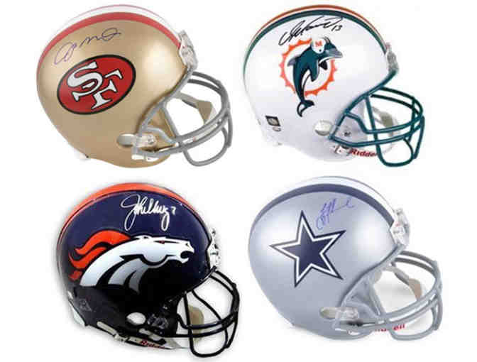 The winning bidder gets to select a hand-signed, full-sized NFL regulation helmet from one of these NFL Greats: Joe Montana, John Elway, Troy Aikman or Dan Marino.