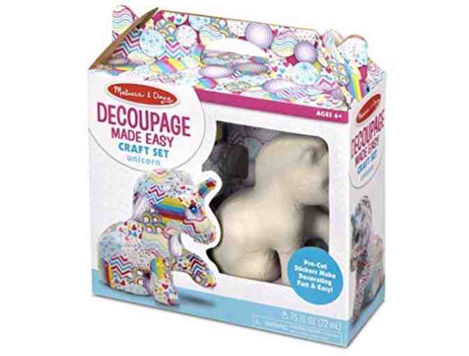 Includes paper-maché unicorn, 4 sheets of stickers, glitter decoupage glue, eye stickers
