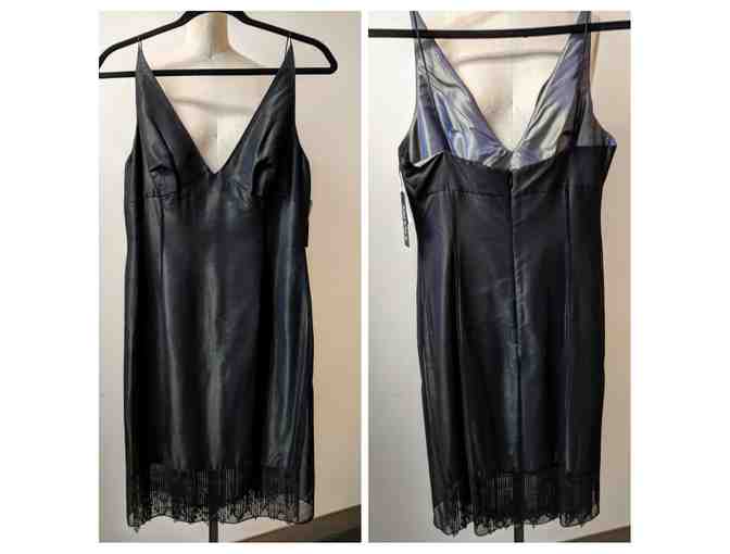 Spaghetti strap slip dress. Has a black overlay. Underneath is a gold/greenish silk with gorgeous beading at the bottom.