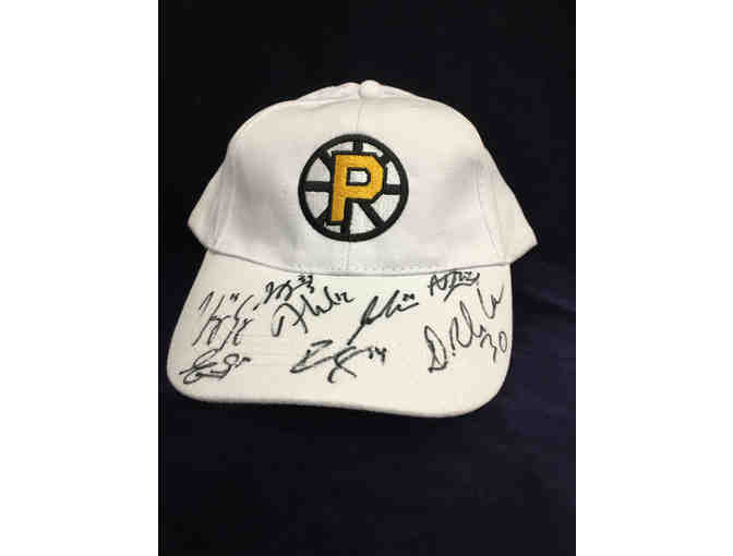 Sports collectors and Bruins fans will love this Providence Bruins cap, autographed by some members of the 2016-2017 team. It has signatures from Matt Grzelcyk, Jake DeBrusk, Ryan Fitzgerald, Austin Czarnik and others.
