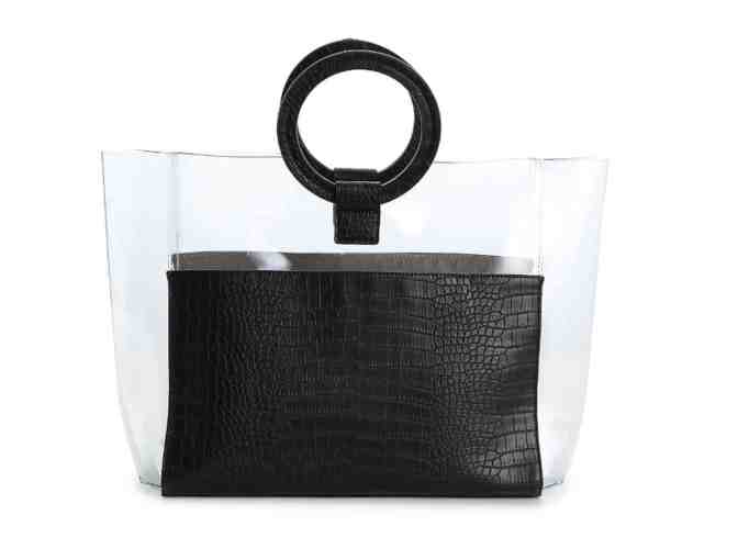 Vince Camuto gives the all-clear signal on styling lucite. The Clea handbag is a modern mix of exotic texture and unexpected material, finished with ring-shaped handles for a memorable touch.