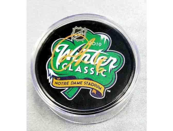 An authentic Winter Classic David Krejci signed puck, personally signed in 2019. If you are an avid Boston Bruins Fan this puck is for you!