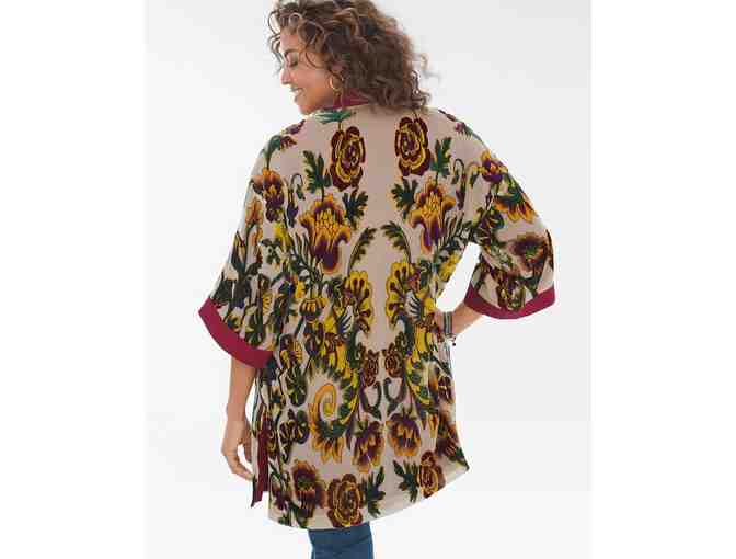 "You'll transform any outfit into a glam get-up when you slip into this gorgeous 35th anniversary kimono. Lavished with a luxe trim and floral velvet burnout design, it will be the toast of the dinner party and the talk of the office (it's just that beautiful). Limited-edition 35th anniversary piece."